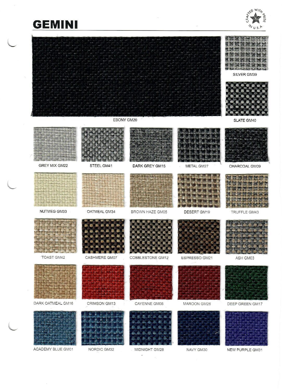 Gemini Tweed offers outstanding value — combining professional-grade performance, easy maintenance, and attractive styling at a competitive price point.